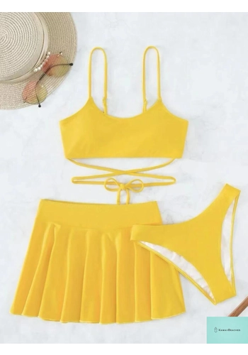 The KawaiiBeaches 3 Pieces Crisscross Tie Back Bikini & Short Skirt Swimsuit is the perfect addition to your summer wardrobe. This stylish swimwear set features a solid design that is both chic and versatile, making it ideal for beach outings or pool parties. The bikini top is designed with a crisscross tie back, allowing for a customizable fit that enhances comfort and support. The accompanying short skirt adds a playful touch, providing coverage while still being fashionable. Made from high-quality materials, this swimsuit is designed to withstand the elements, ensuring durability and longevity. The lightweight fabric is soft against the skin, making it comfortable to wear all day long. Available in various sizes, this swimsuit caters to different body types, allowing every woman to feel confident and beautiful. Whether you're lounging by the beach or taking a dip in the pool, the KawaiiBeaches swimsuit is designed to make a statement. Embrace your summer adventures with this trendy and functional swimwear set that combines style and practicality effortlessly.
