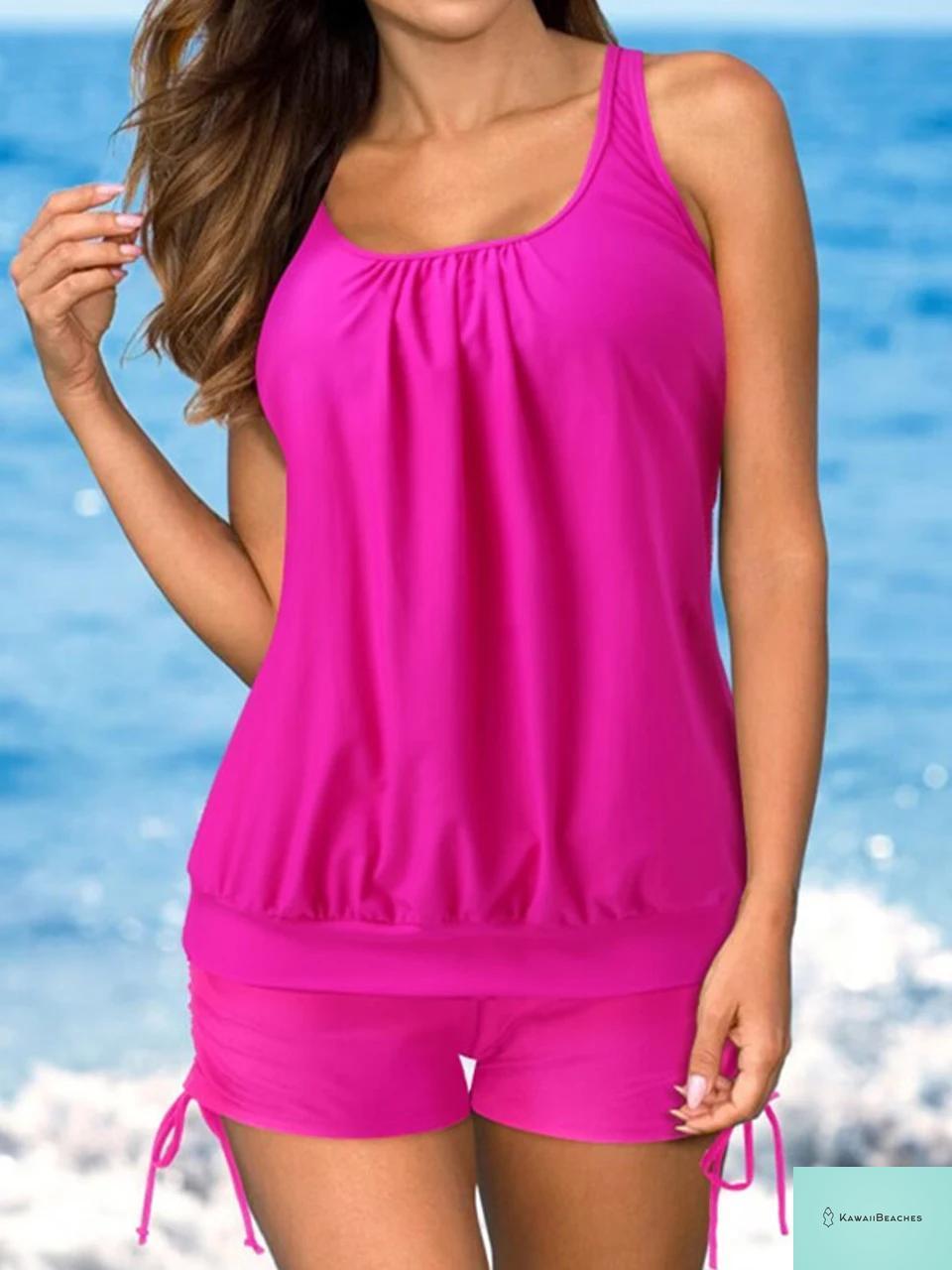 KawaiiBeaches presents the 2 Piece Drawstring Tankini, a stylish and comfortable swimsuit designed for women who appreciate both fashion and functionality. This high-waisted bathing suit features a trendy drawstring design that allows for a customizable fit, ensuring you feel confident and secure while enjoying your time at the beach or pool. The tankini is crafted from high-quality materials that provide excellent stretch and support, making it perfect for swimming, sunbathing, or beach activities. With its vibrant printed solid colors, this swimsuit adds a touch of fun to your summer wardrobe. The flattering cut enhances your silhouette, while the breathable fabric keeps you cool and comfortable throughout the day. Available in sizes up to 3XL, this swimsuit caters to a variety of body types, promoting body positivity and confidence. Whether you're lounging by the water or taking a dip, the KawaiiBeaches 2 Piece Drawstring Tankini is the ideal choice for those seeking a blend of style and practicality. Elevate your swimwear collection with this chic and versatile bathing suit that promises to make a statement wherever you go.